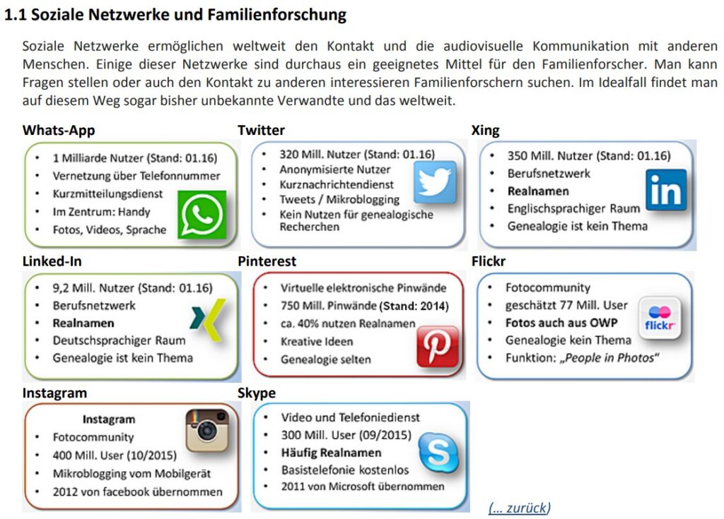 • Familienforschung mit sozialen Medien facebook, instagram, whats-app