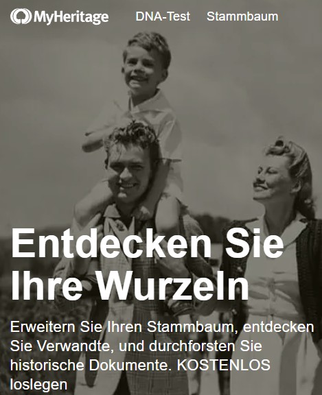 myHeritage, Israel, >35 Mrd. Datensätze, teilweise kostenpflichtig. Sammlung digitalisierter genealogischer Originaldokumente, DNA-Datenbank, weltweit. >>> myHeritage