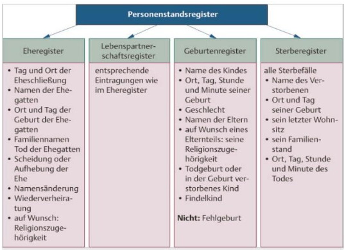 Mit dem Gesetz entfiel das kaum bekannte und oft mit dem Stammbuch der Familie verwechselte Familienbuch, einige seiner Funktionen erfüllen künftig das Ehe-, Lebenspartnerschafts- und das Geburtenregister. Die selten benutzten Abstammungsurkunden und Geburtsscheine wurden abgeschafft, die Geburtsurkunde blieb erhalten. Zudem wurde die Benutzung der Personenstandsregister, insbesondere zu Forschungszwecken, neu geregelt. Das Verbot der religiösen Voraustrauung wurde gestrichen; 2017 wurde jedoch ein Verbot religiöser oder „traditioneller“ Trauungen von Minderjährigen neu eingeführt. Zitationshinweis: Textauszüge Wikipedia 20.02.2026