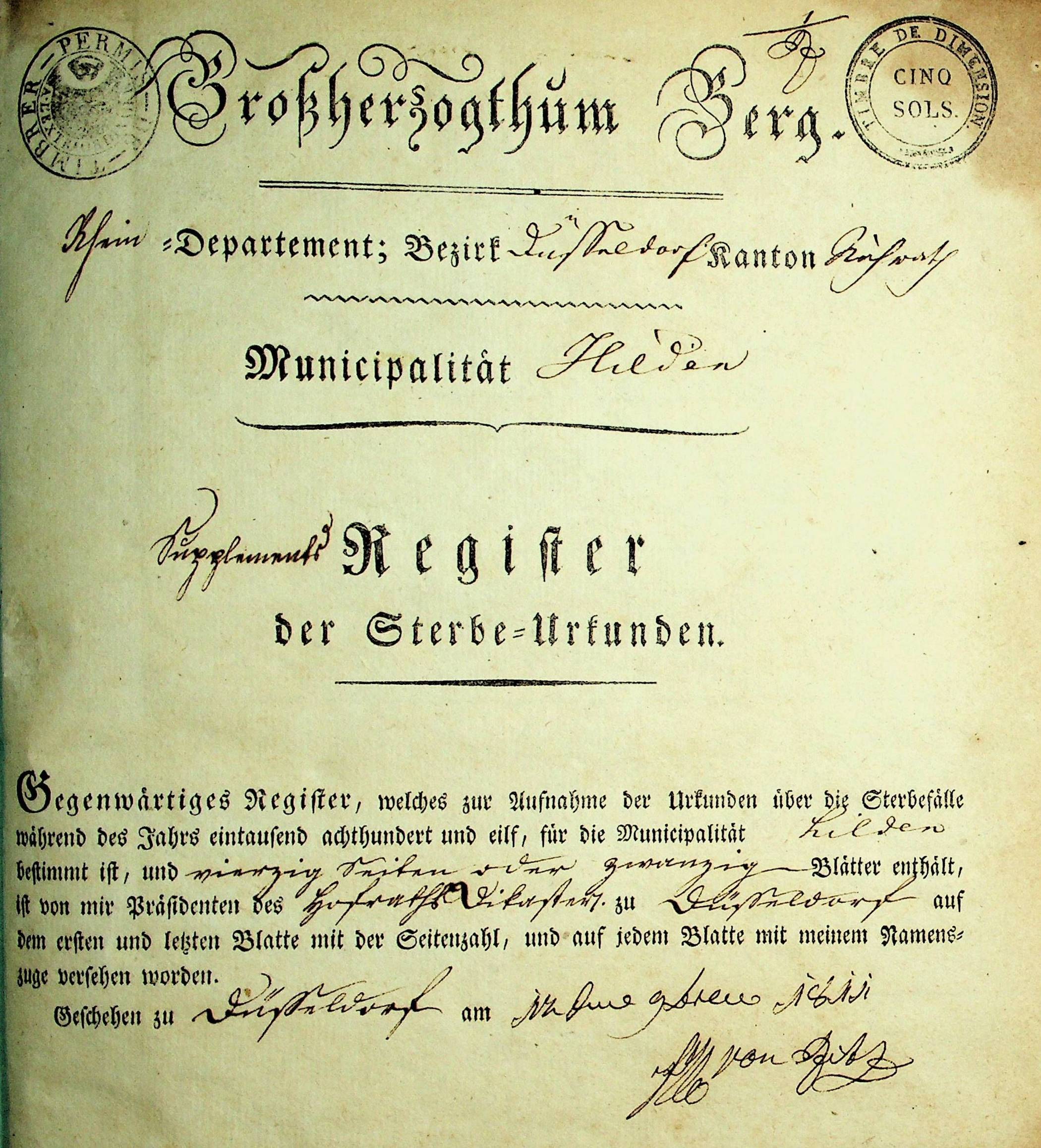 Das gesamte linksrheinische Deutschland wurde 1798 in die erste Französische Republik eingegliedert und damit beginnen hier die Zivilstandsregister. Sie wurden bis zum November 1815 in französischer Sprache geführt. Von 1798 bis 1805 sind die Einträge sogar nach dem französischen Revolutionskalender datiert. *) Zitationshinweis