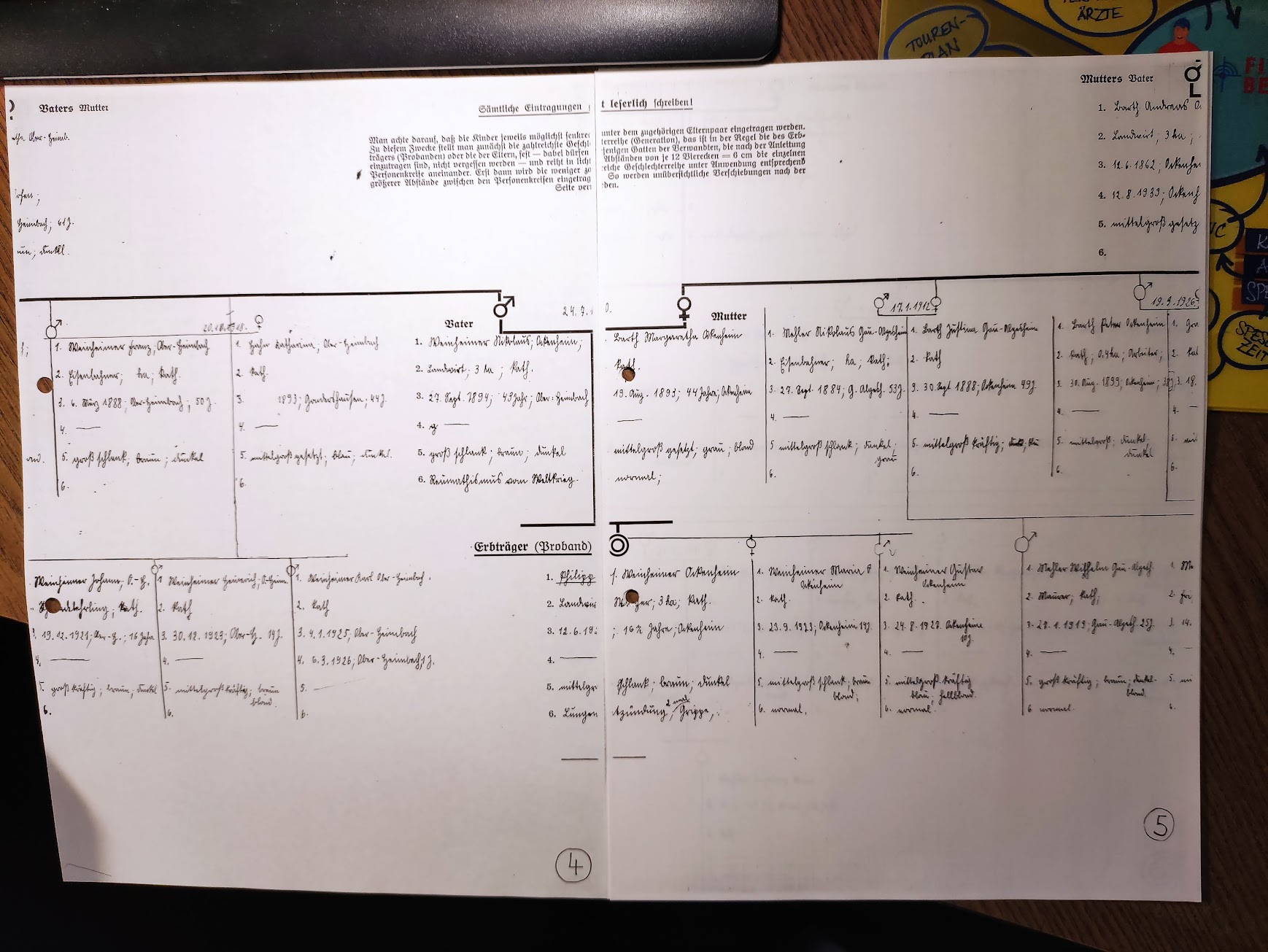 In der nationalsozialistischen Zeit 1933 – 1945 wurde der Ariernachweis in Deutschland verlangt. Dazu mussten die Ahnen und Verwandtschaftsverhältnisse dokumentiert werden.