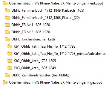 Verzeichnisstruktur der digitalen Kirchen- und Familienbücher von Oberheimbach