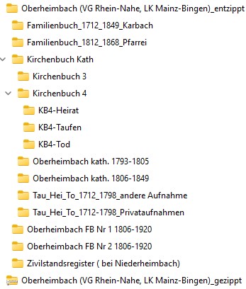 Verzeichnisstruktur digitaler Obhb. Kirchenbuecher & Zivilstandsregister im Familienarchiv
